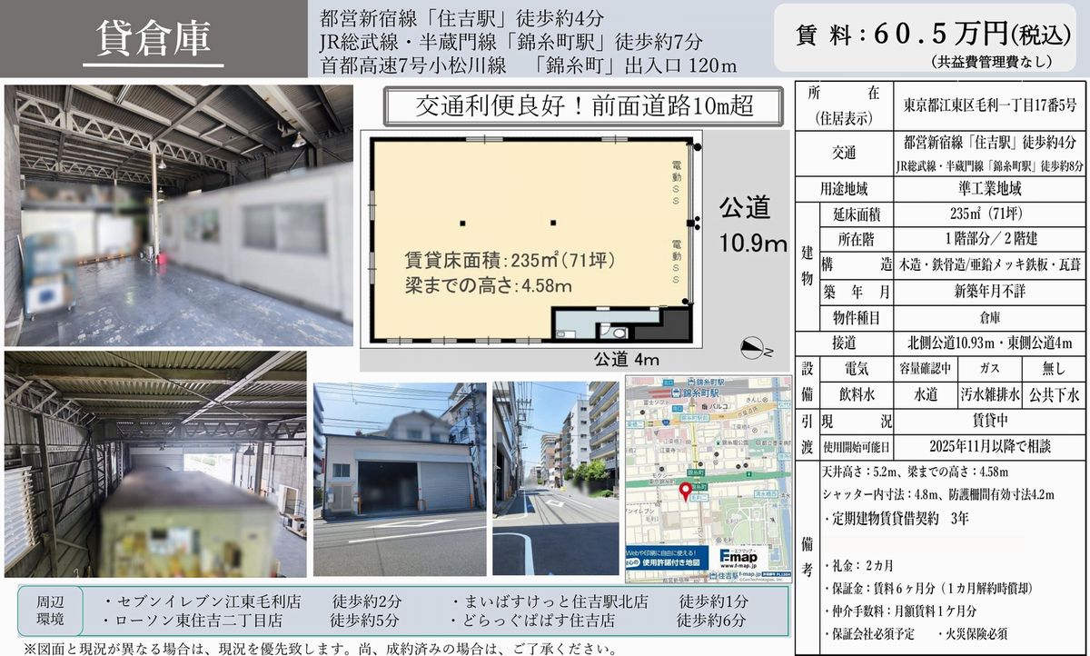 東京都江東区毛利1-17-5 (住吉) 住吉 貸倉庫 詳細データ