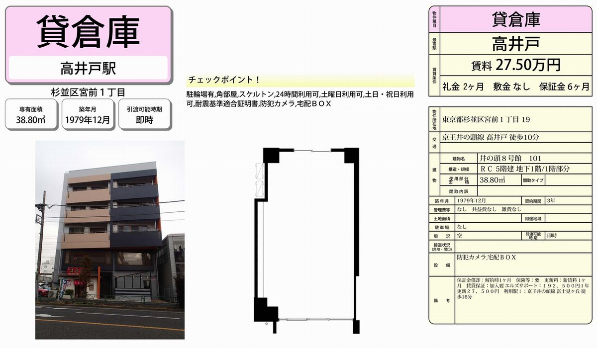 東京都杉並区宮前1-19 (高井戸) 井の頭8号館貸倉庫 詳細データ