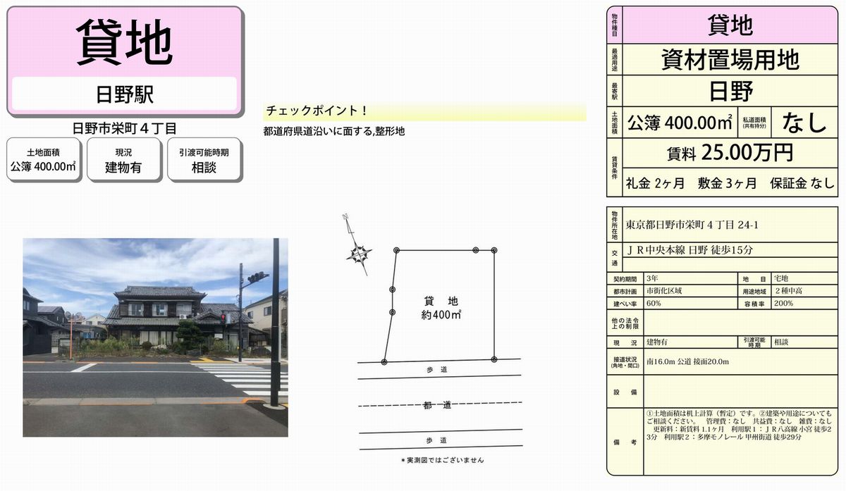 東京都日野市栄町4-24-1 (日野) 日野 貸地 詳細データ