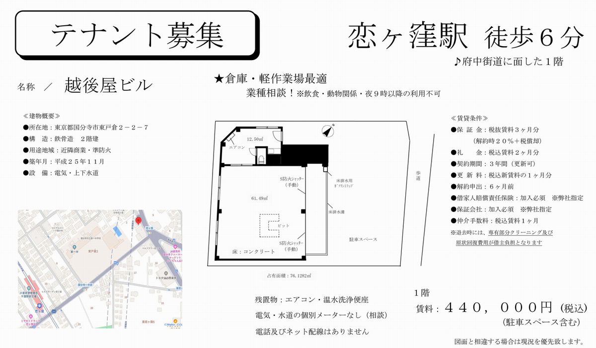 東京都内の貸し倉庫・貸し工場の情報満載(トップ) > 東京のエリアで探す > 東京都国分寺市 > 恋ヶ窪 > 国分寺市東戸倉2-2-7 越後屋ビル