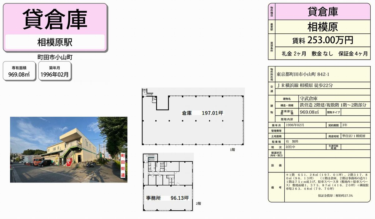 東京都町田市小山町842-1 (古淵) 守武倉庫 詳細データ