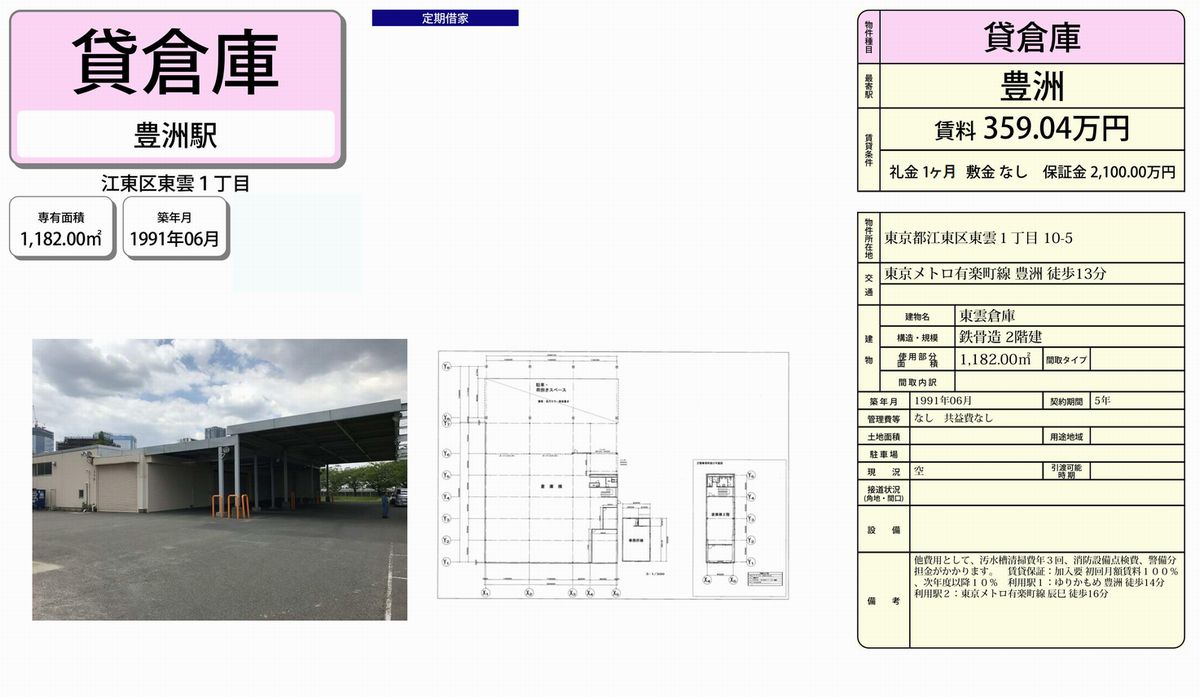 東京都江東区東雲1-10-5 (豊洲) 東雲倉庫 詳細データ