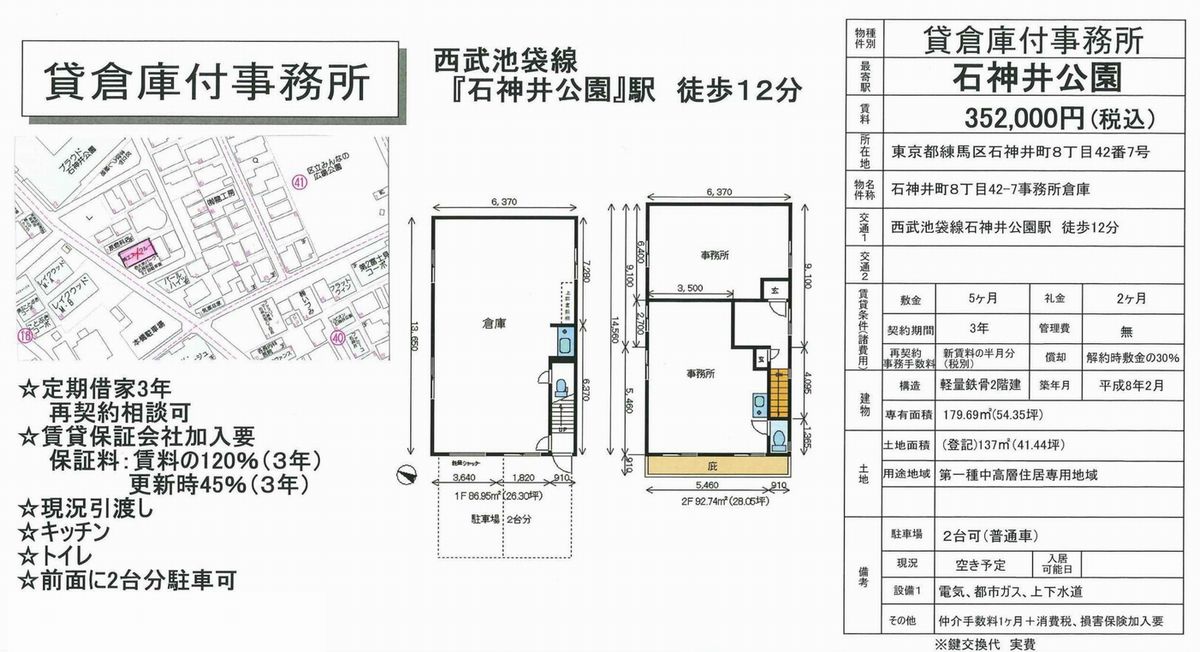 東京都練馬区石神井町8-42-7 (石神井公園) 石神井公園 貸倉庫事務所 一棟貸 詳細データ