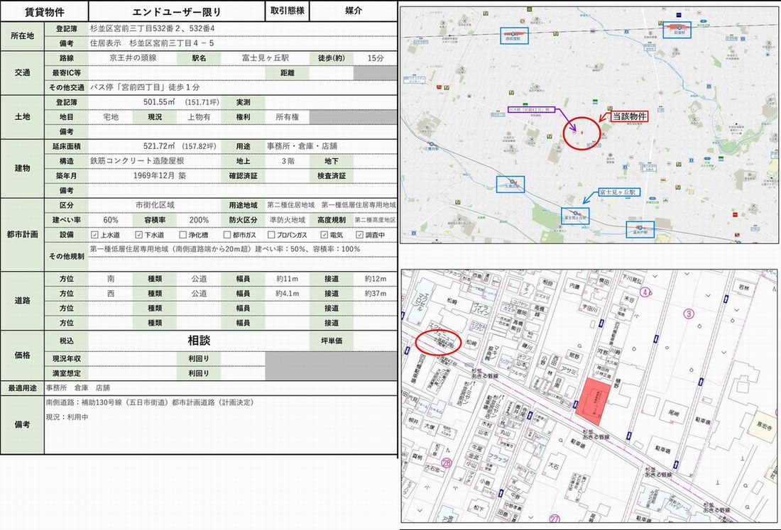 東京都杉並区宮前3-4-5 (富士見ヶ丘) 富士見ヶ丘 貸倉庫 詳細データ
