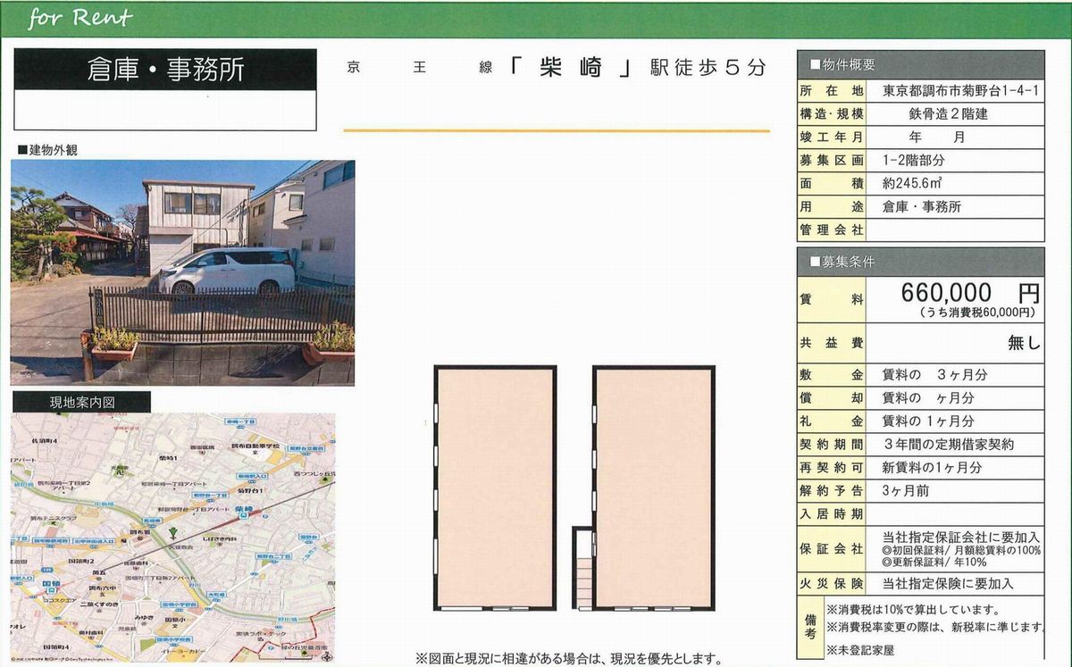 東京都調布市菊野台1-4-1 (柴崎) 柴崎 貸倉庫 詳細データ