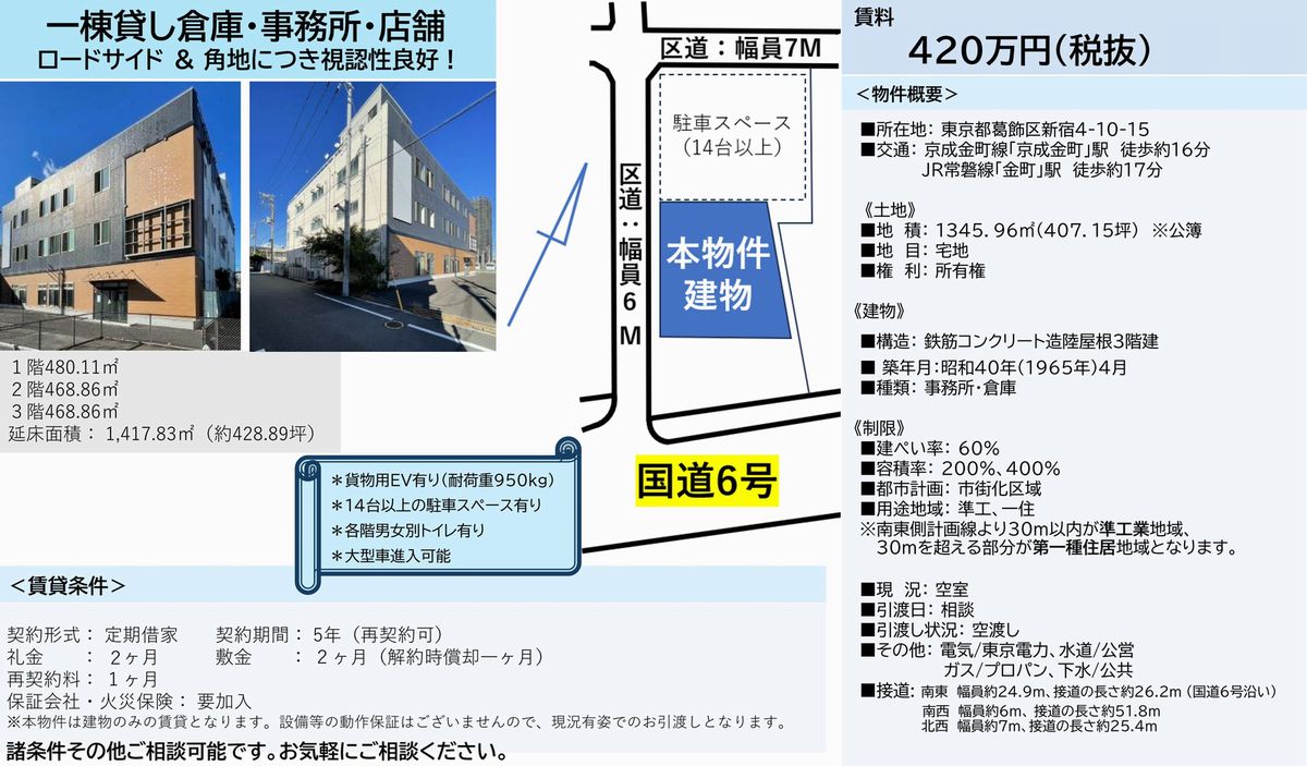 東京都葛飾区新宿4-10-15 (金町) 金町 貸倉庫 詳細データ