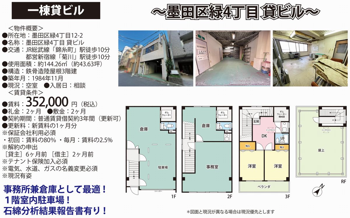 東京都墨田区緑4-12-2 (錦糸町) 錦糸町 貸倉庫 詳細データ