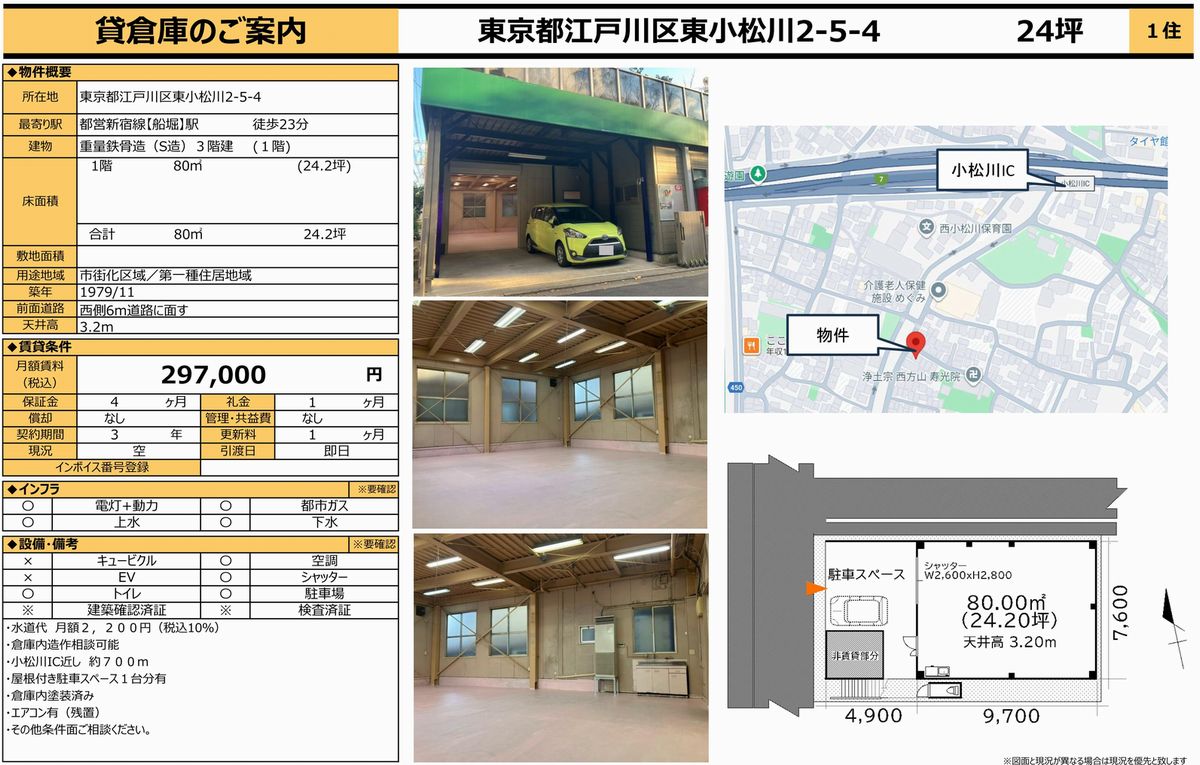 東京都江戸川区東小松川2-5-4 (船堀) 船堀 倉庫 詳細データ