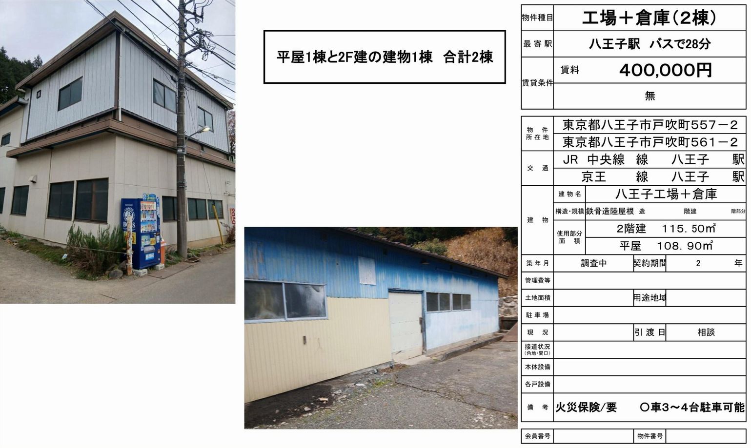 物件名 八王子 貸倉庫 2棟一括