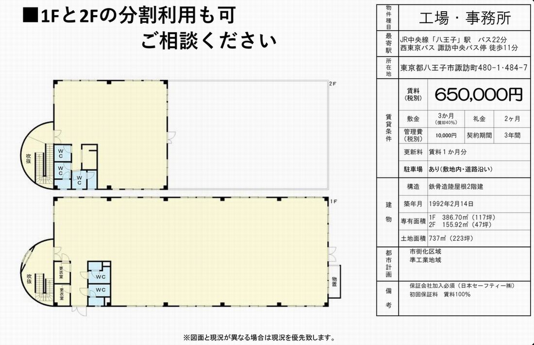 東京都八王子市諏訪町480-1 (八王子) 諏訪町貸工場 詳細データ