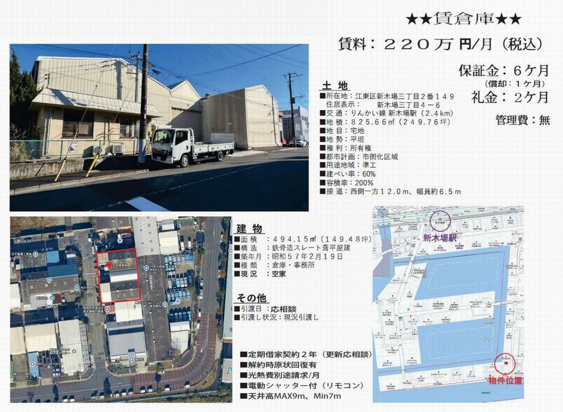東京都江東区新木場3-4-6 (新木場) 新木場 貸倉庫 詳細データ