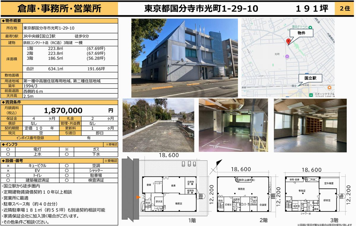 東京都国分寺市光町1-29-10 (国立) 国立 貸倉庫 詳細データ