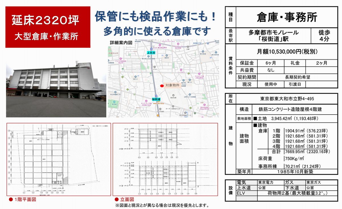 東京都東大和市立野4-495 (桜街道) 桜街道 貸倉庫 一棟貸 詳細データ